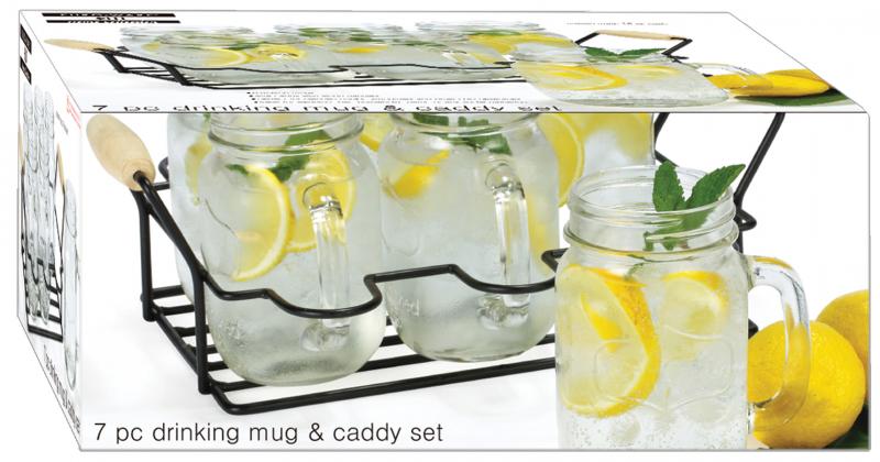 GLASS MUG&CADDY SET 7PC